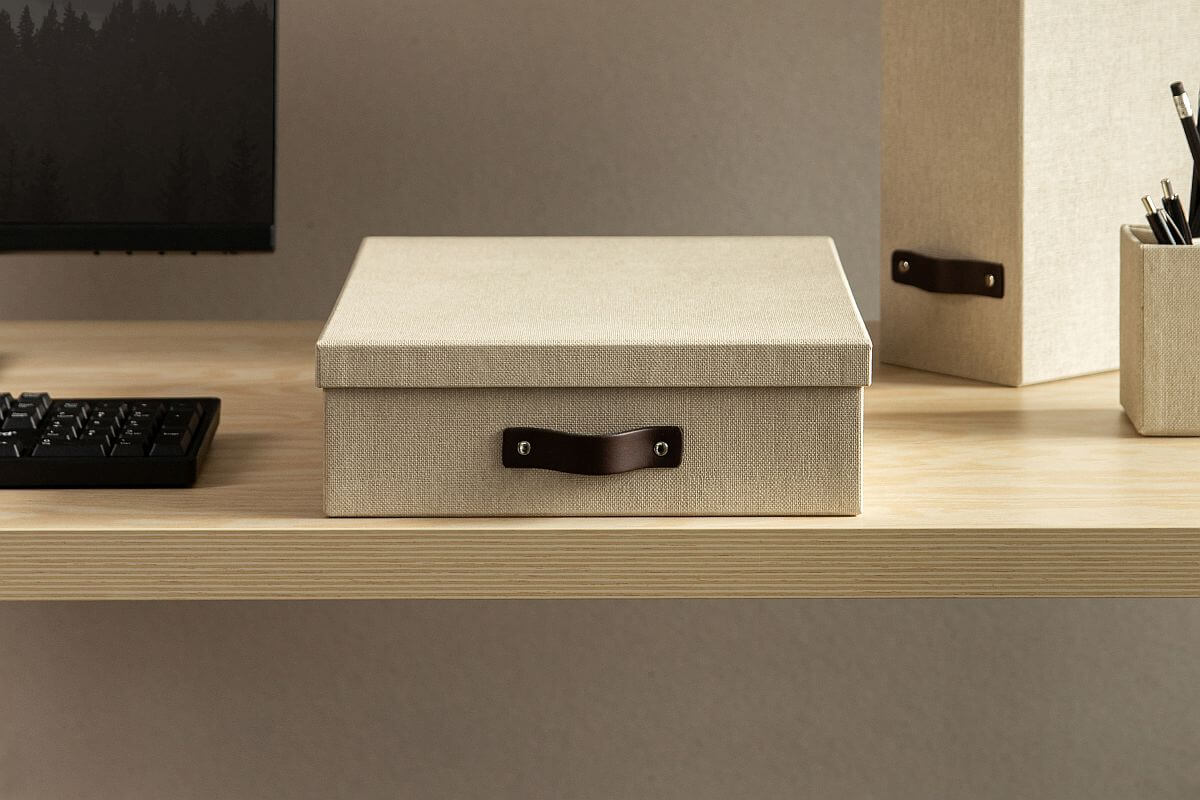 Dokumentenbox OSKAR aus Holzfaserplatte – Eleganz und Stabilität in Leinenoptik
