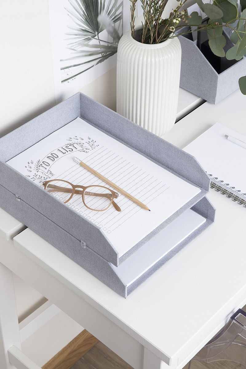 Bringen Sie Struktur und Stil in Ihren Arbeitsbereich: Unsere Postfächer aus besonders robuster Holzfaserplatte in edler Leinenoptik überzeugen durch ihre hochwertige Verarbeitung und ihre zeitlose, moderne Ästhetik. Sie bieten eine praktische und zugleich formschöne Lösung, um Briefe, Dokumente oder interne Post im Format A4 übersichtlich zu sortieren und sicher aufzubewahren.