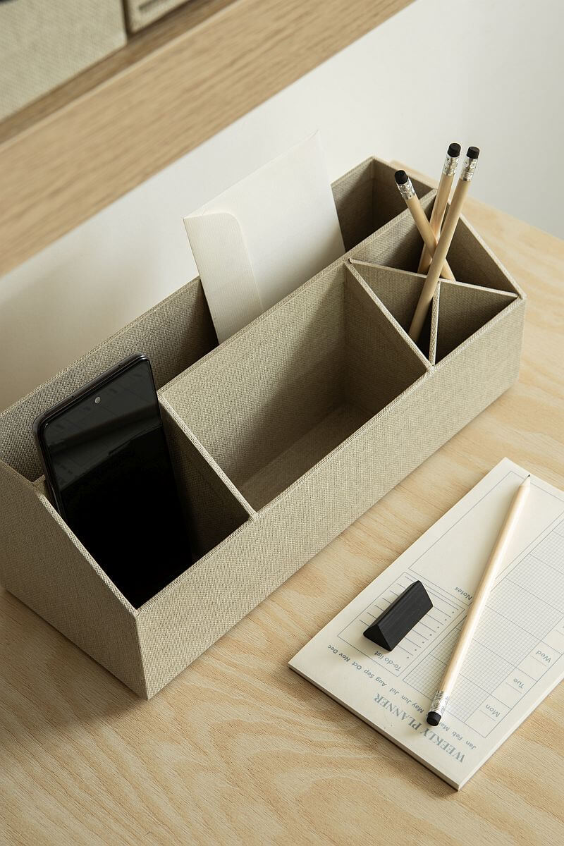 Eleganz trifft Ordnung – Der Schreibtischorganizer in edler Leinenoptik